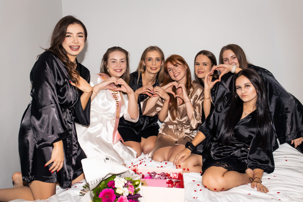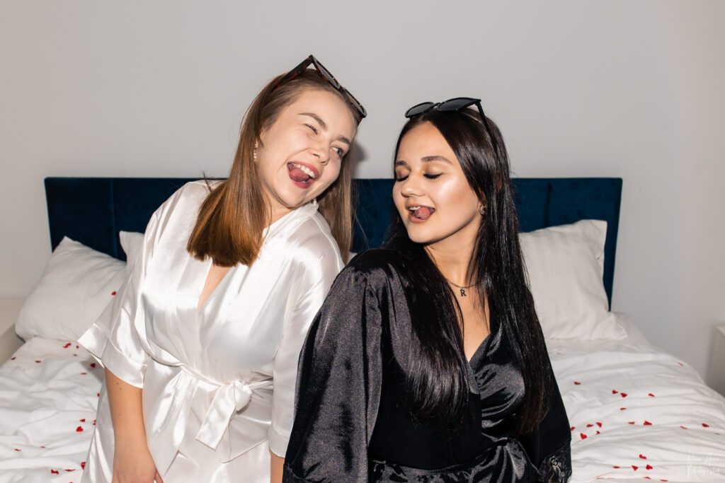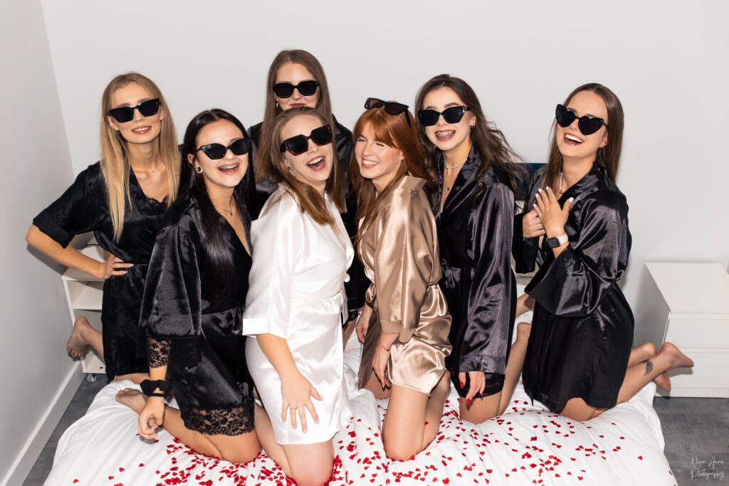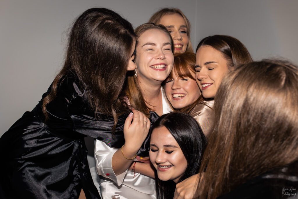 Wrześniowy, deszczowy wieczór w Gdańsku. Ekipa Karoliny przyjechała do Trójmiasta z różnych stron Polski. Dziewczyny przyznały już podczas rezerwacji terminu, że nie do końca mają pomysł na to, jak sesja mogłaby wyglądać. To na szczęście nigdy nie jest problemem! Szybko zaproponowałam organizatorkom imprezy pozostanie w apartamencie i stworzenie sesji zdjęciowej z (jak ja to nazywam) chamskim fleszem 😄. Branżowo nazywa się to chyba party flash… czy jakoś tak 😄📸. Dziewczyny szybko podłapały taki klimat i po obwieszczeniu (słyszę to niemal na każdym panieńskim, jaki fotografuję), że modelkami to one nie są, rozpoczęłyśmy zabawę 🎉🥰. Tak, uważam, że tworzenie sesji – lub bardziej w moim wydaniu – reportażu z wieczorów panieńskich to musi być przede wszystkim dobra zabawa! 😎 Nie stres i zakłopotanie, ale poczucie, że jesteście dziś najlepszymi wersjami siebie i pokażecie to światu 😍! Pierwsze minuty sesji przeważnie są mniej szalone, poznajemy się ze sobą, żartujemy, a później włączamy Britney Spears… i sprawy toczą się same 😄🪩💕. A jak potoczyły się w ten wrześniowy wieczór? Zobaczcie sami 😉