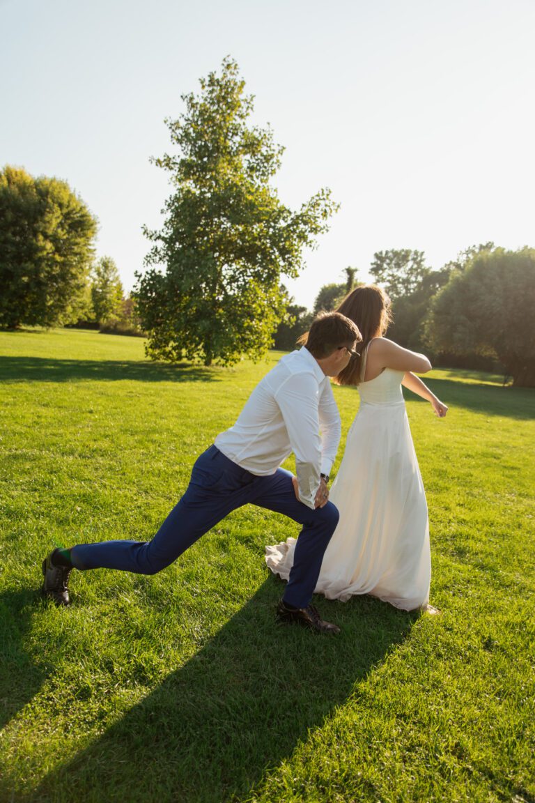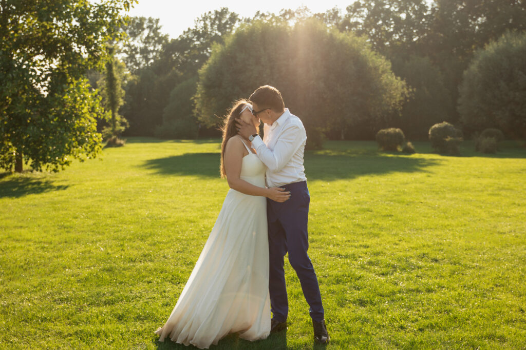 Ta sesja była zdecydowanie intrygująca! Z Natalią i Eldarem spotkaliśmy się po dwóch dnia od ślubu i wesela, aby wykonać pamiątkową sesję ślubną, zanim wrócą do domu. Lędowo House było miejscem przygotowań Pary Młodej, a owo pole golfowe pojawiło się już w moim reportażu tamtego dnia. Jako że było mi mało, to postanowiliśmy wycisnąć z niego tyle, ile się da i tak właśnie powstały te kadry. Mimo zmęczenia Natalia i Eldar dali z siebie wszystko, choć z ich temperamentami nie było to trudne 😀 Znaleźliśmy nawet kwiatka, którego w dniu ślubu ekipa Pana Młodego wpięła do marynarki podczas fotografowania przygotowań! A efektem wspólnie spędzonych dwóch godzin jest 85 oddanych Parze zdjęć i super wspomnienia ❤️📸. Ciekawi jak to wyglądało na filmie? Na dole tej strony znajdziecie odnośnik do trailera współtworzonego z Pecelerowicz Photography ☺️