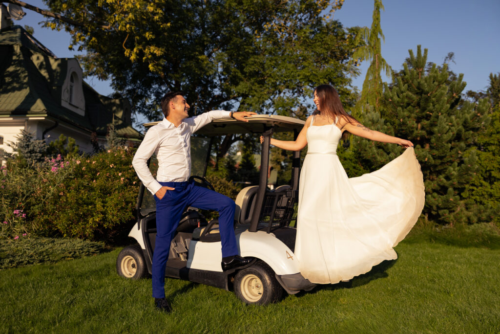 Sesja ślubna na polu golfowym