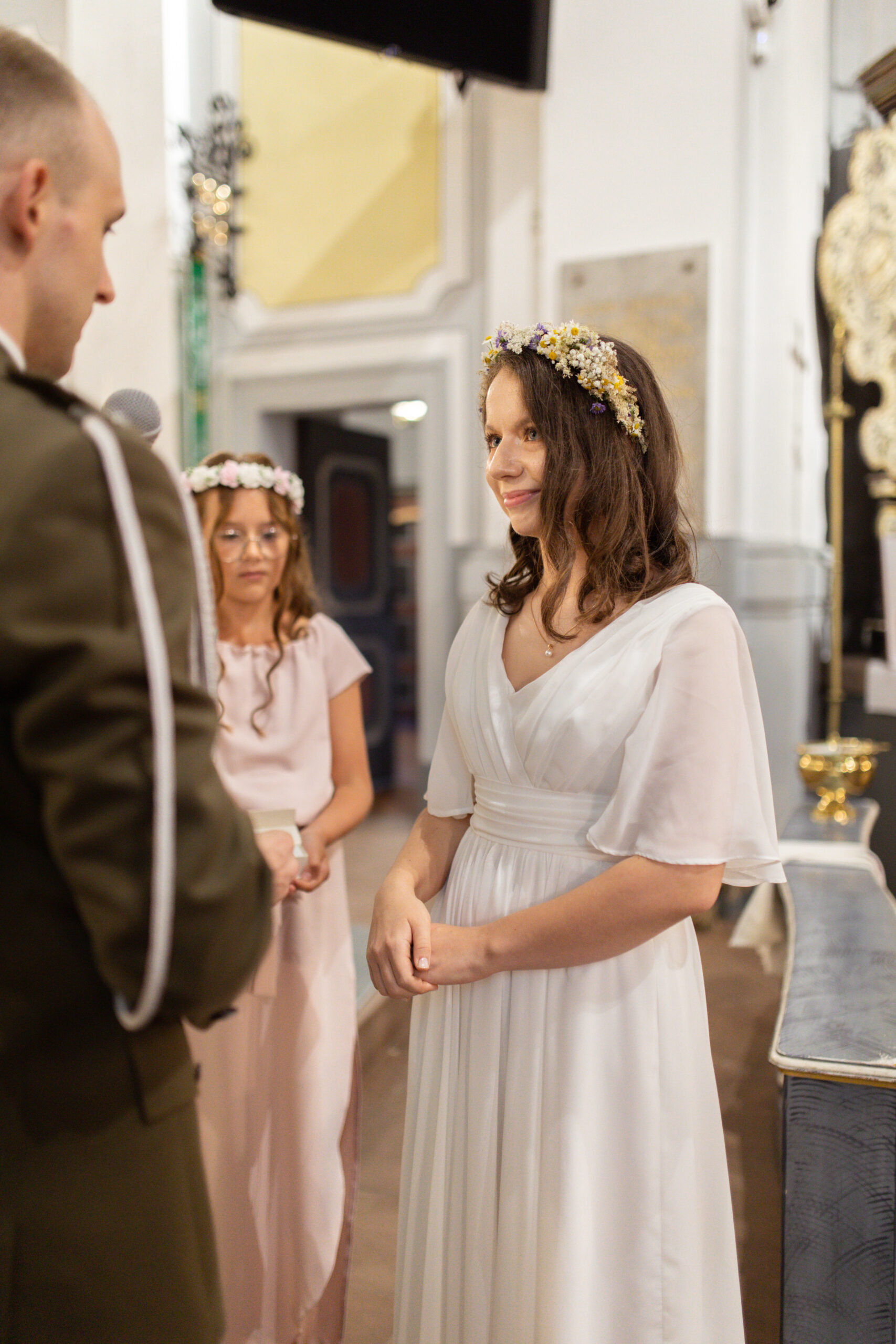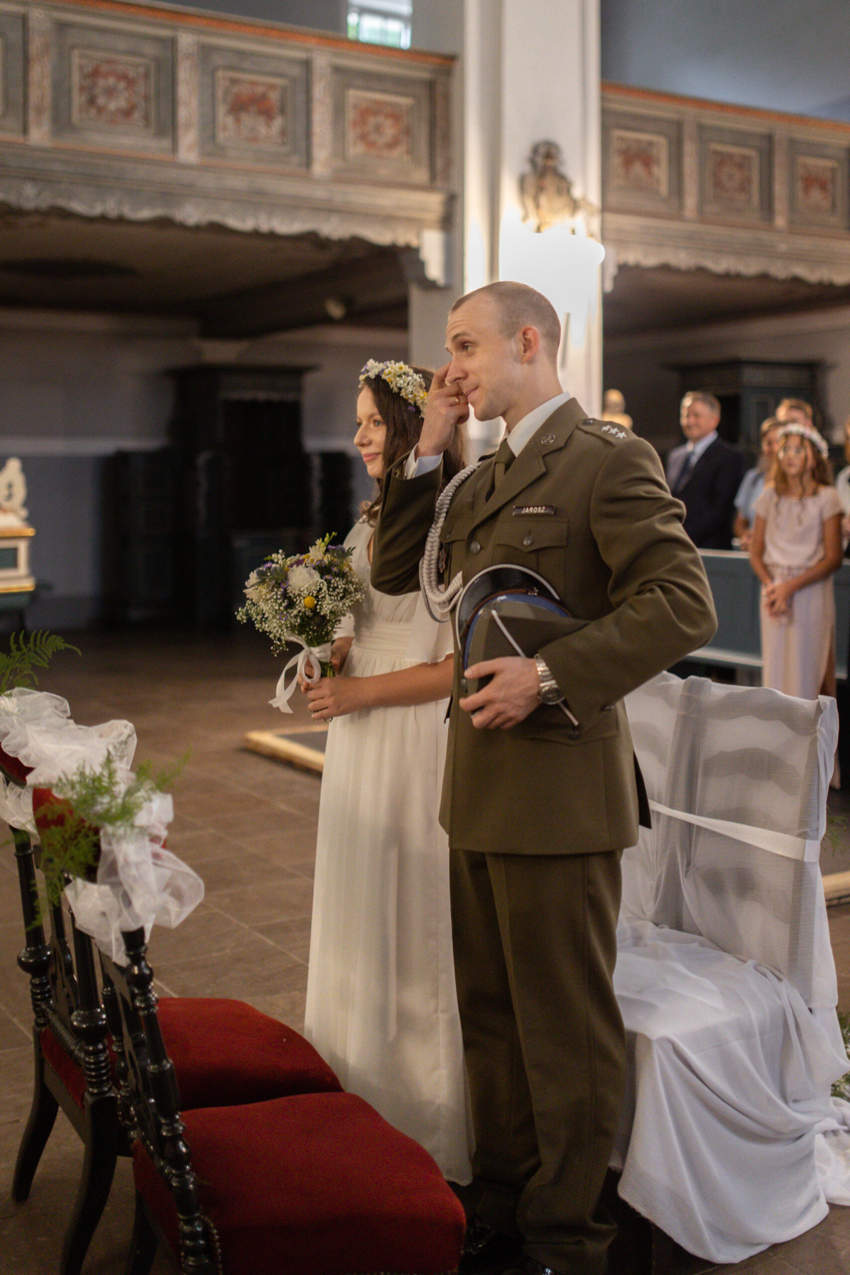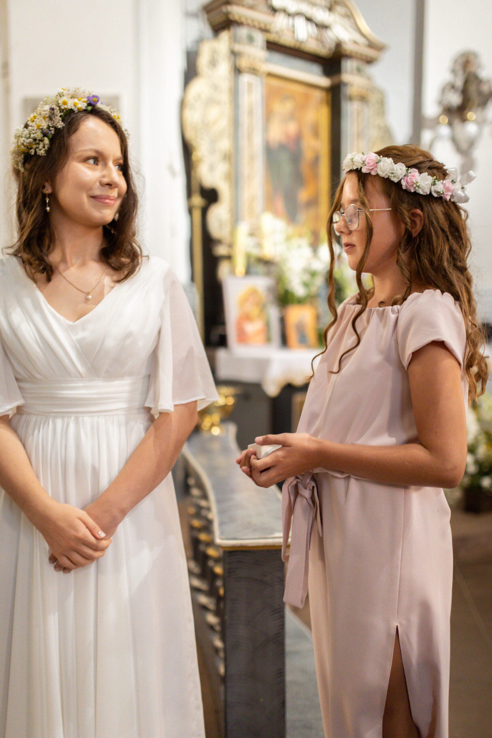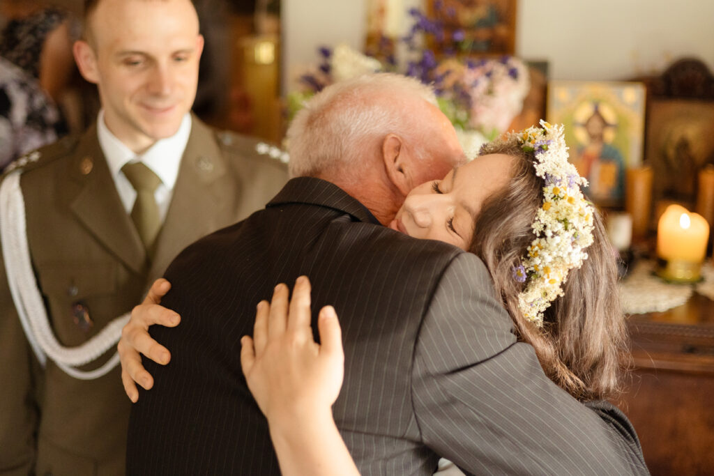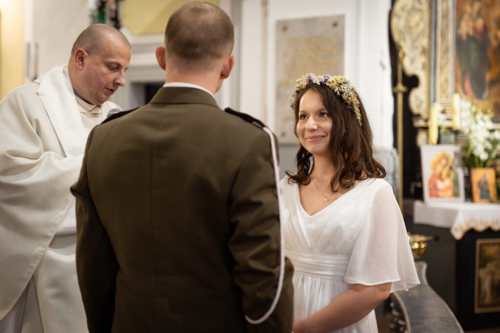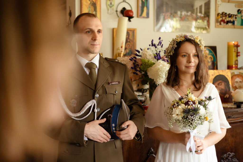 To był niecodzienny ślub… Święto Wojska Polskiego, piękny, sierpniowy, letni dzień. Pannę Młodą zastaliśmy w pięknym, rodzinnym ogrodzie na 3h przed ślubem plecącą swój wianek z kwiatów polnych. Pamiętam, że byliśmy wtedy bardzo zaskoczeni. Michalina ze spokojem w głosie opowiedziała nam, że po tym, jak już skończy swój wianek, będzie się malowała, siostra pomoże jej podkręcić włosy, a jeśli zdążą, to pomalują jeszcze paznokcie. Wchodząc do domu zostaliśmy ciepło przywitani przez Panią Mamę i rozpoczęliśmy obserwowanie rzeczywistości rodziny, do której w tym dniu nas zaproszono.