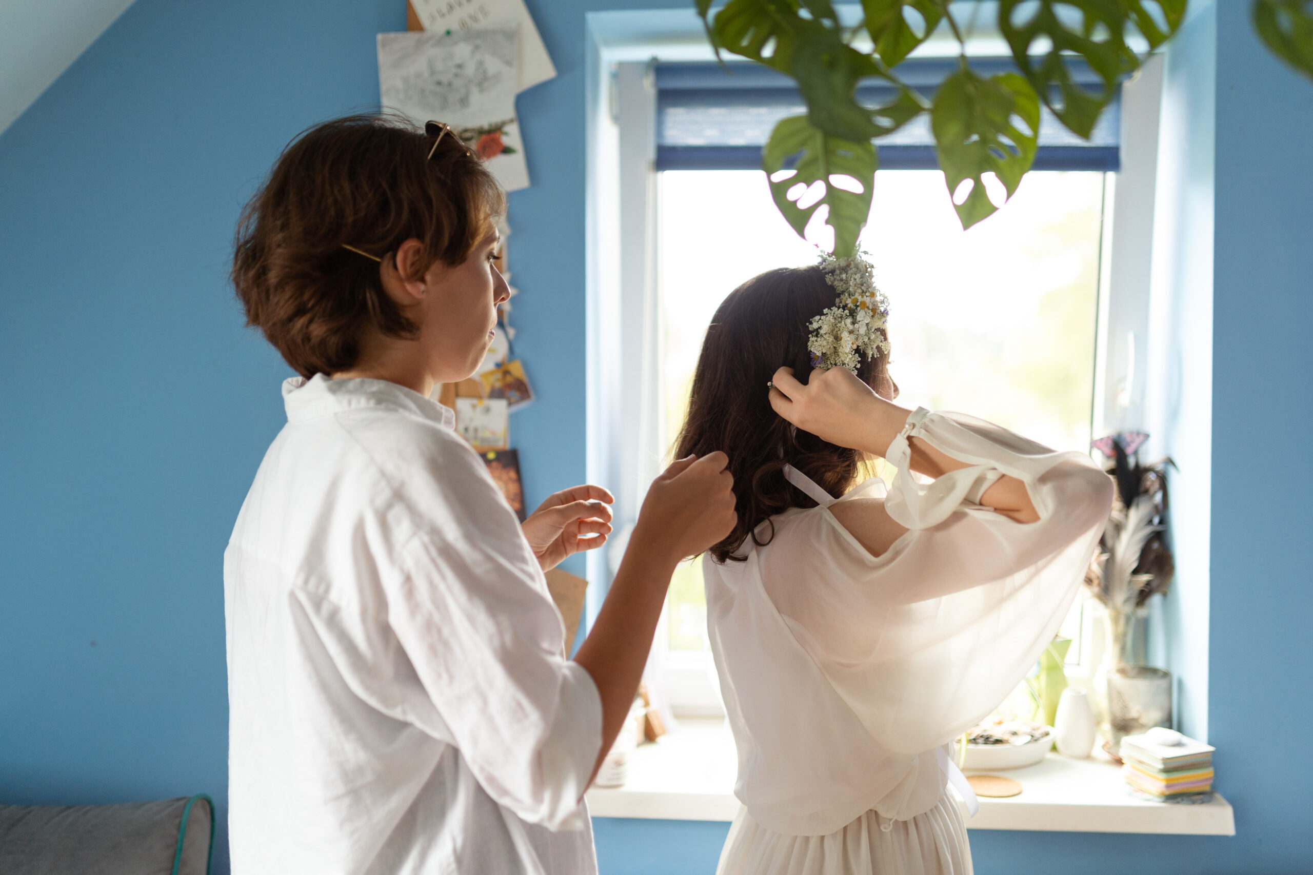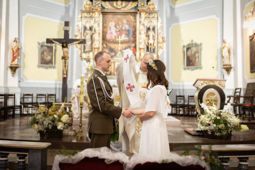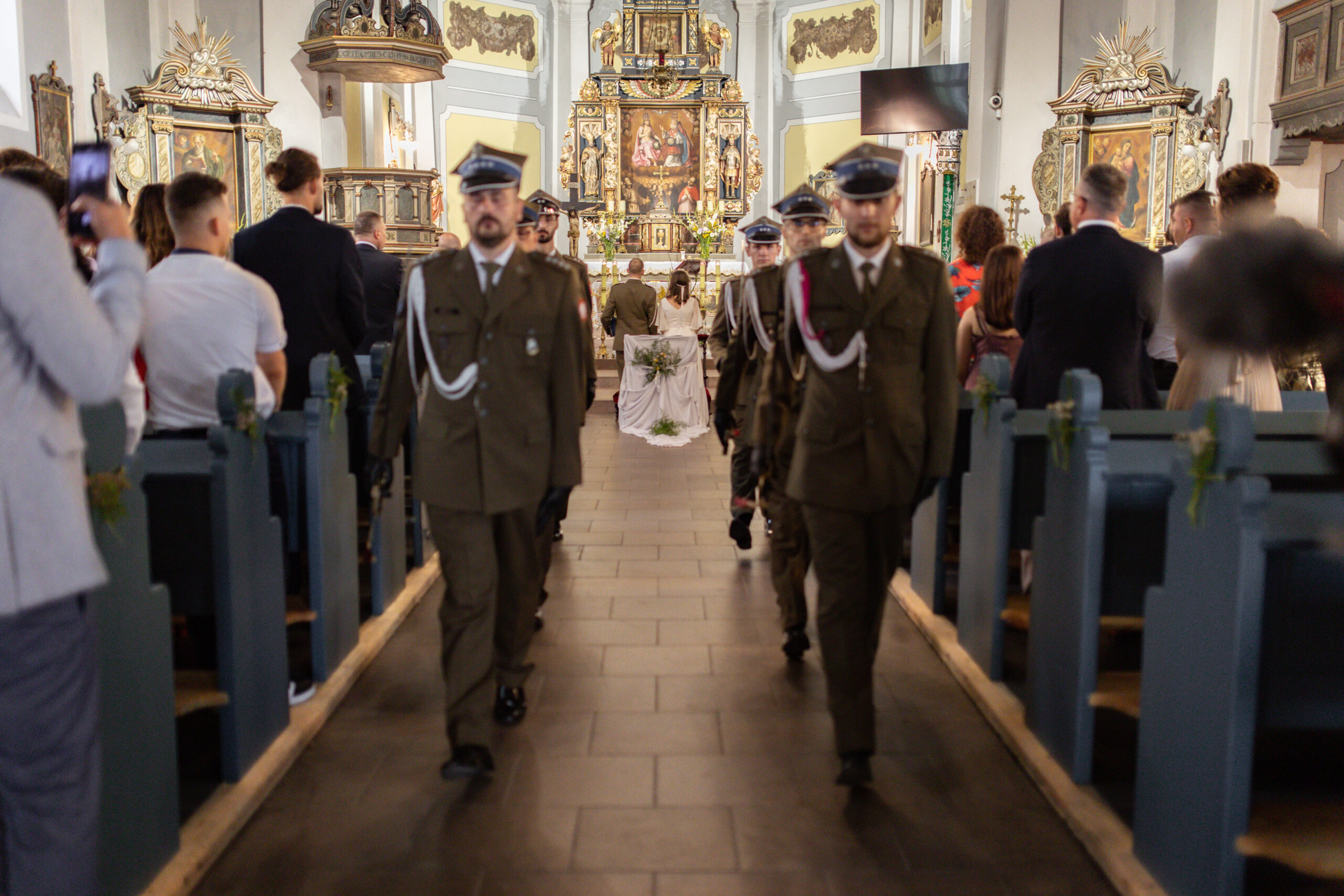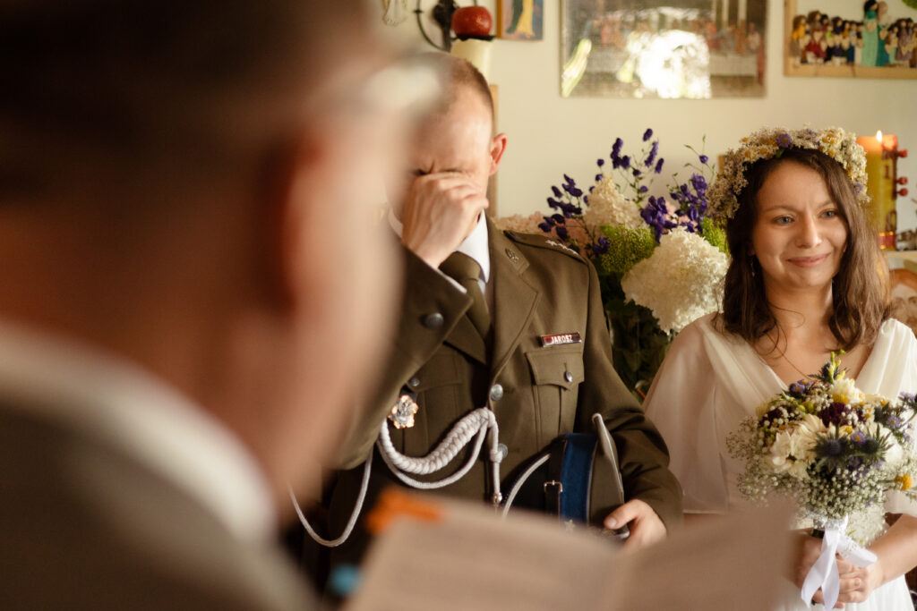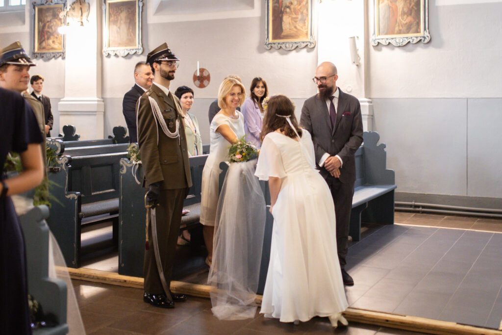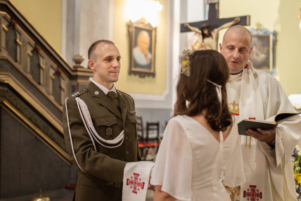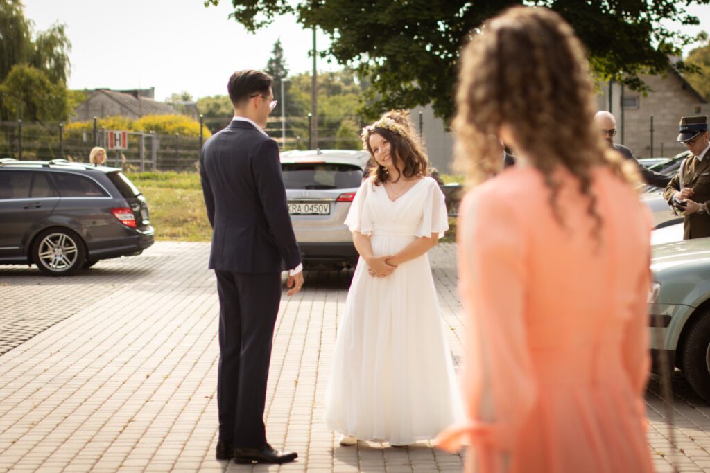 To był niecodzienny ślub… Święto Wojska Polskiego, piękny, sierpniowy, letni dzień. Pannę Młodą zastaliśmy w pięknym, rodzinnym ogrodzie na 3h przed ślubem plecącą swój wianek z kwiatów polnych. Pamiętam, że byliśmy wtedy bardzo zaskoczeni. Michalina ze spokojem w głosie opowiedziała nam, że po tym, jak już skończy swój wianek, będzie się malowała, siostra pomoże jej podkręcić włosy, a jeśli zdążą, to pomalują jeszcze paznokcie. Wchodząc do domu zostaliśmy ciepło przywitani przez Panią Mamę i rozpoczęliśmy obserwowanie rzeczywistości rodziny, do której w tym dniu nas zaproszono.