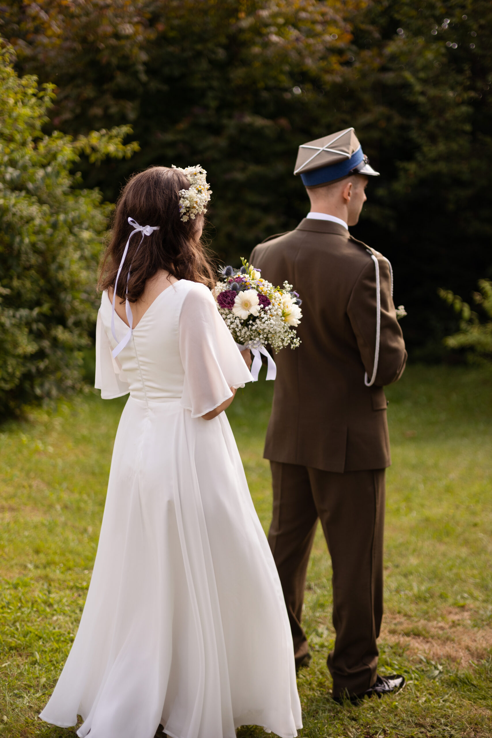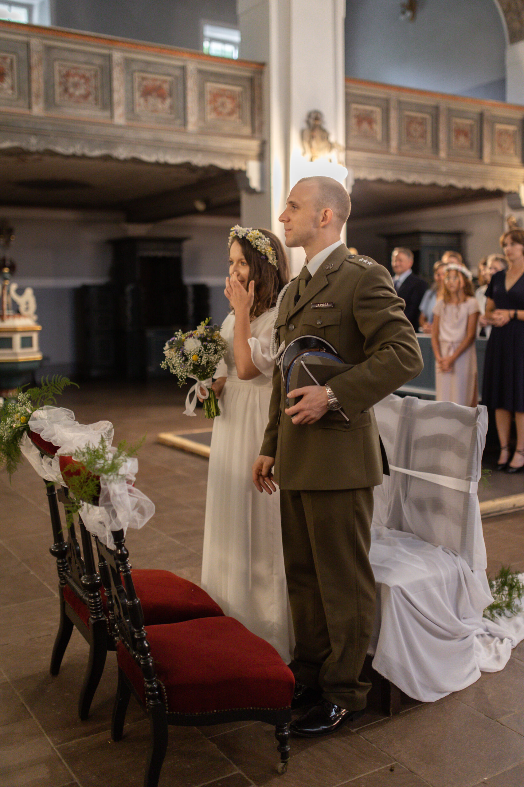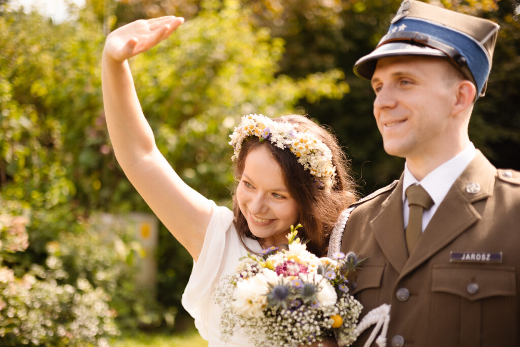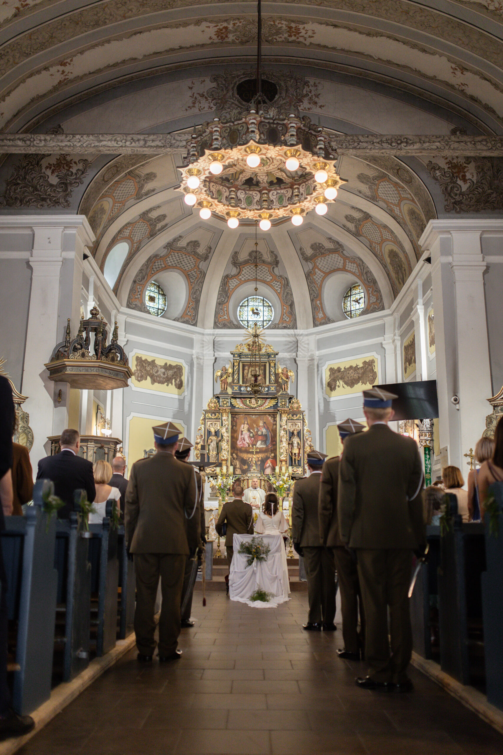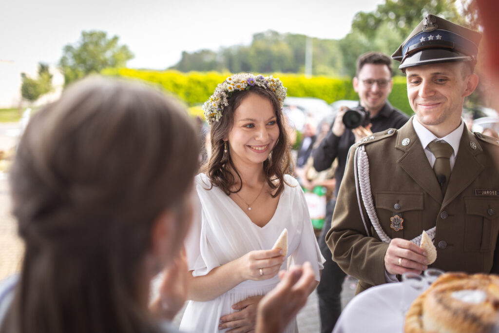 To był niecodzienny ślub… Święto Wojska Polskiego, piękny, sierpniowy, letni dzień. Pannę Młodą zastaliśmy w pięknym, rodzinnym ogrodzie na 3h przed ślubem plecącą swój wianek z kwiatów polnych. Pamiętam, że byliśmy wtedy bardzo zaskoczeni. Michalina ze spokojem w głosie opowiedziała nam, że po tym, jak już skończy swój wianek, będzie się malowała, siostra pomoże jej podkręcić włosy, a jeśli zdążą, to pomalują jeszcze paznokcie. Wchodząc do domu zostaliśmy ciepło przywitani przez Panią Mamę i rozpoczęliśmy obserwowanie rzeczywistości rodziny, do której w tym dniu nas zaproszono.