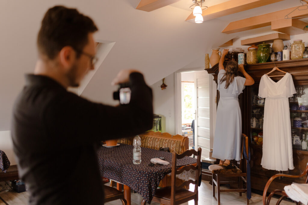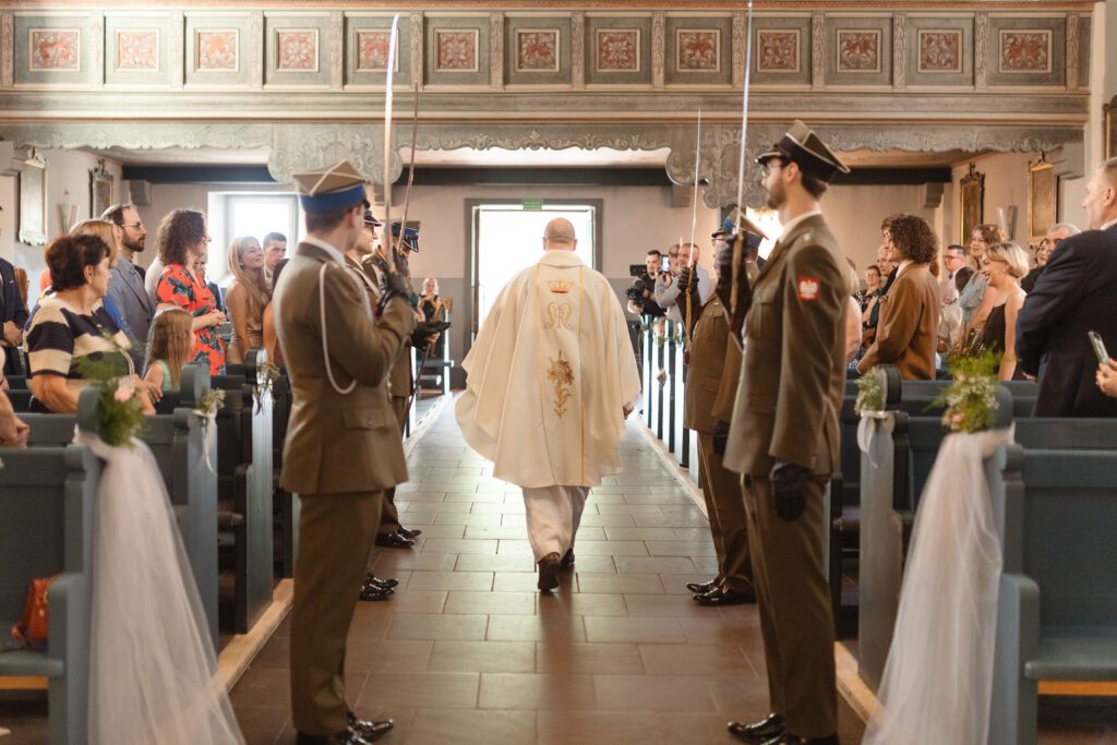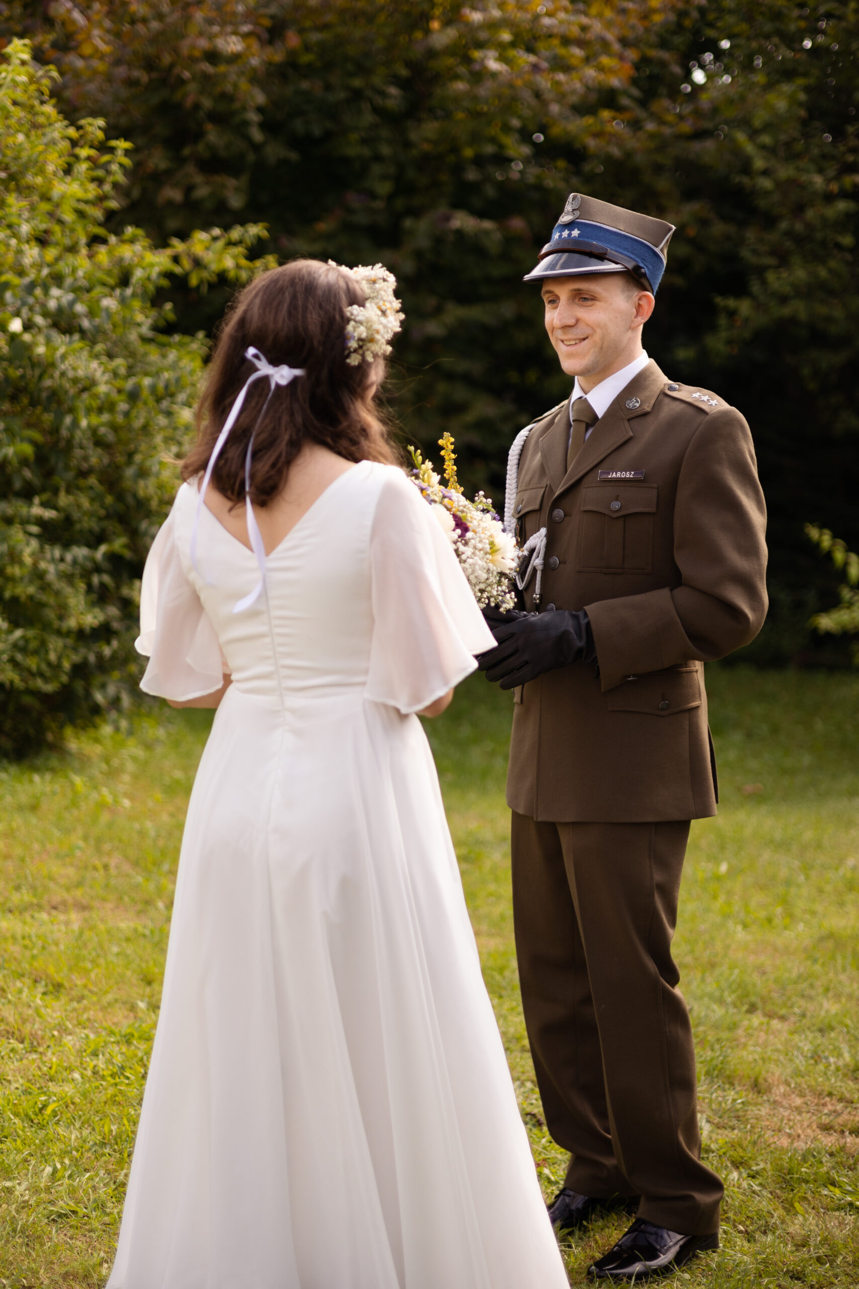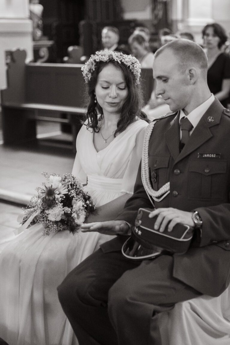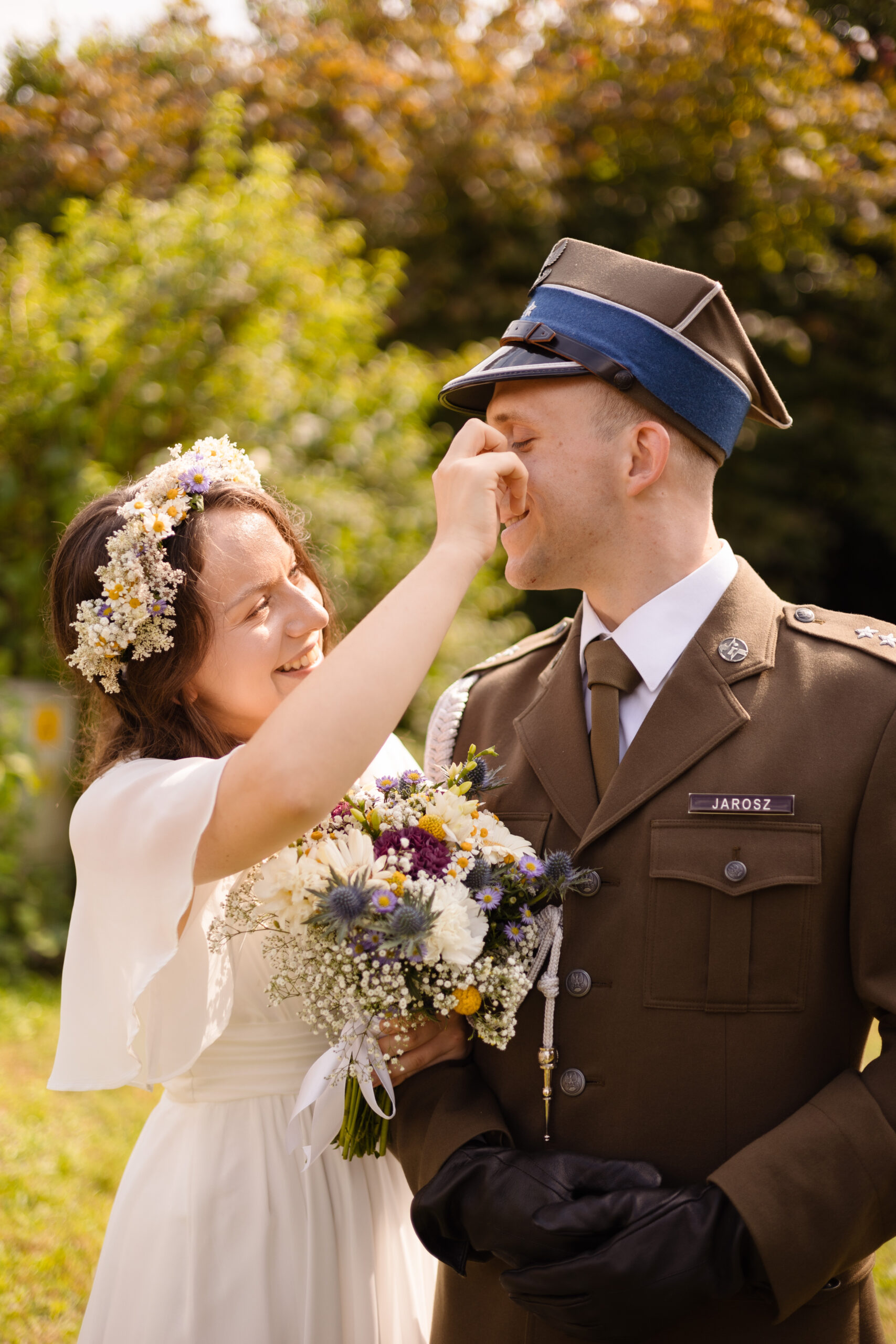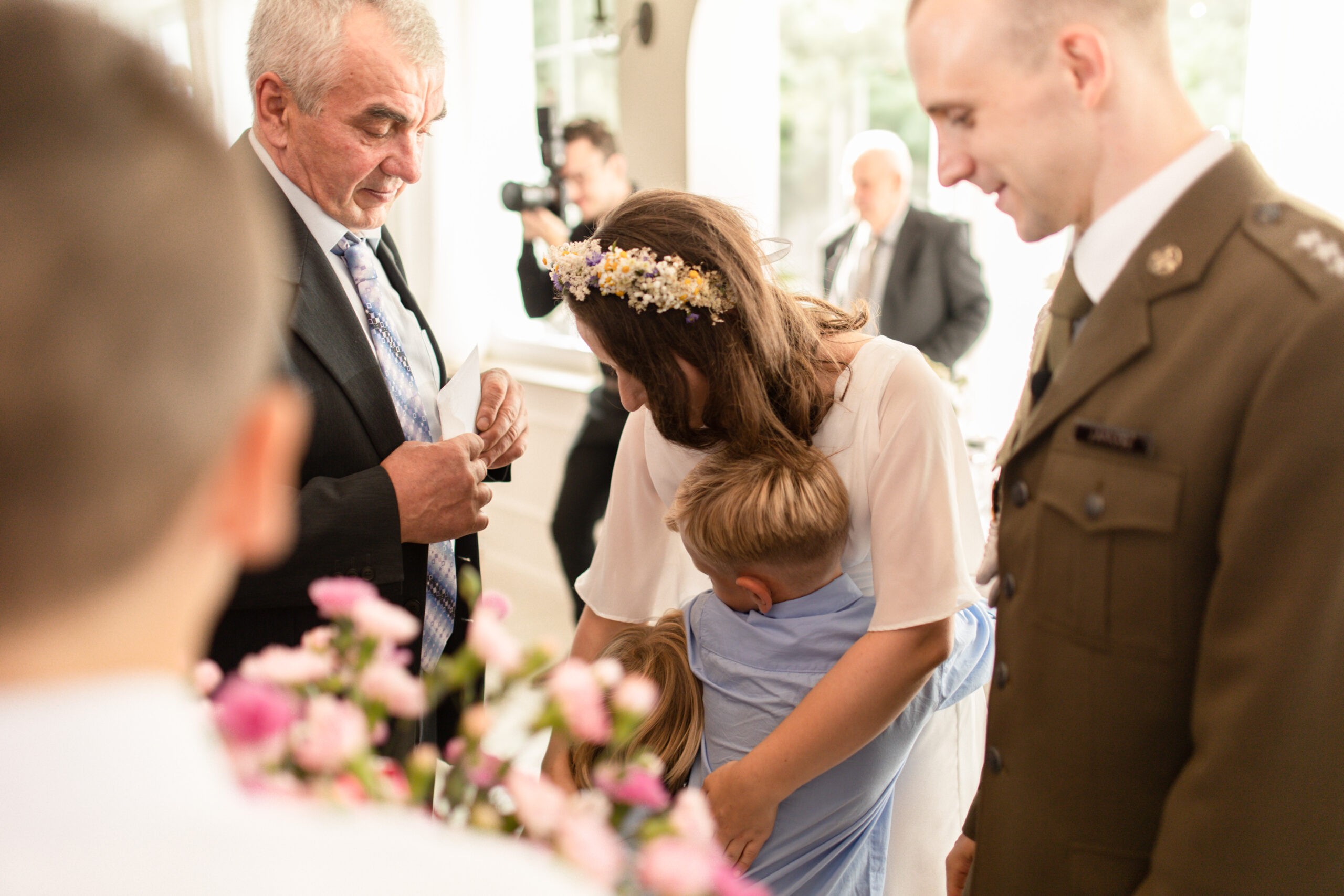 To był niecodzienny ślub… Święto Wojska Polskiego, piękny, sierpniowy, letni dzień. Pannę Młodą zastaliśmy w pięknym, rodzinnym ogrodzie na 3h przed ślubem plecącą swój wianek z kwiatów polnych. Pamiętam, że byliśmy wtedy bardzo zaskoczeni. Michalina ze spokojem w głosie opowiedziała nam, że po tym, jak już skończy swój wianek, będzie się malowała, siostra pomoże jej podkręcić włosy, a jeśli zdążą, to pomalują jeszcze paznokcie. Wchodząc do domu zostaliśmy ciepło przywitani przez Panią Mamę i rozpoczęliśmy obserwowanie rzeczywistości rodziny, do której w tym dniu nas zaproszono.