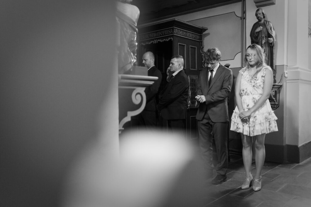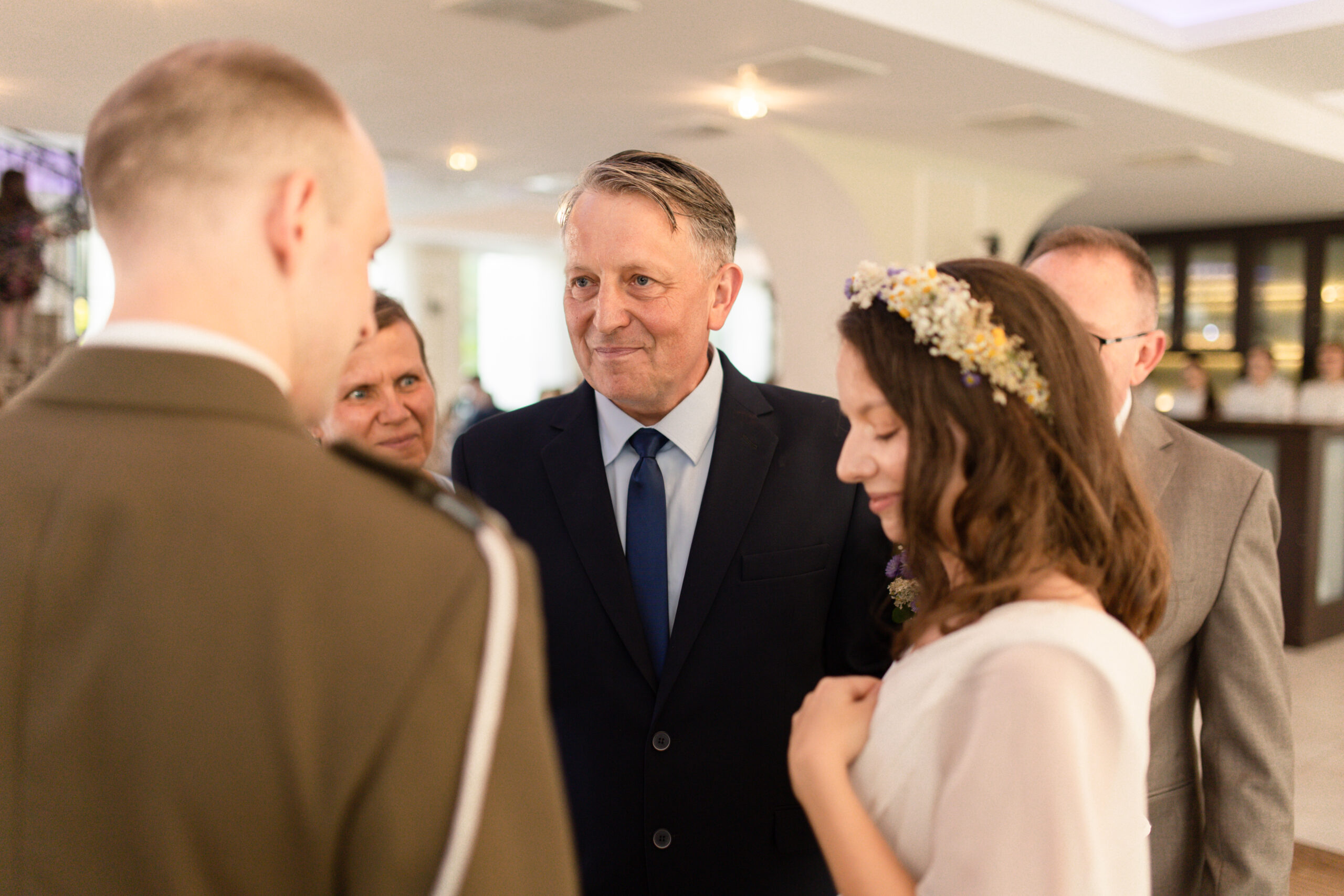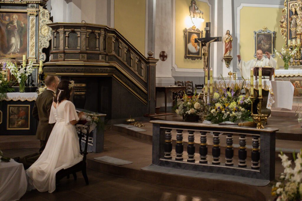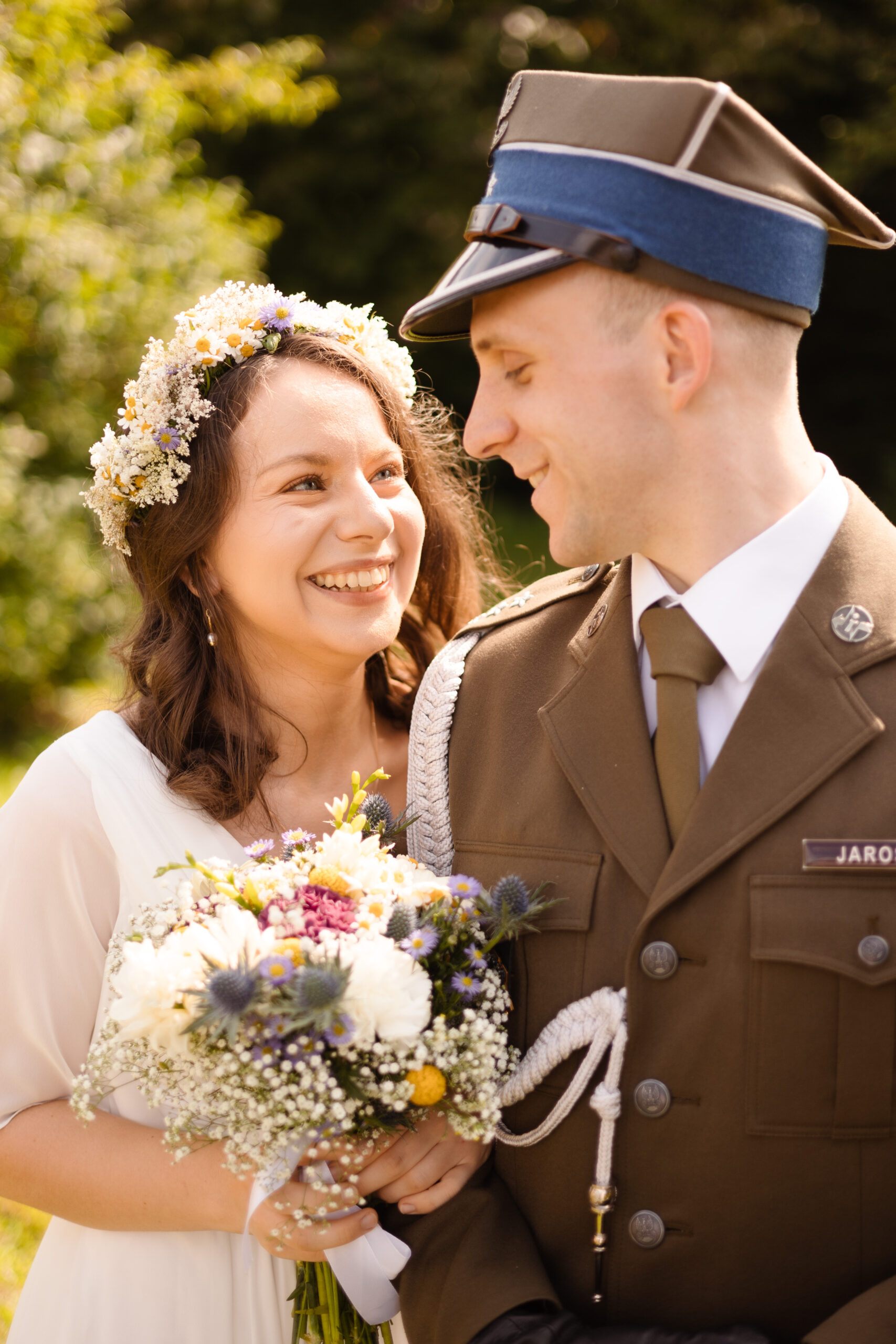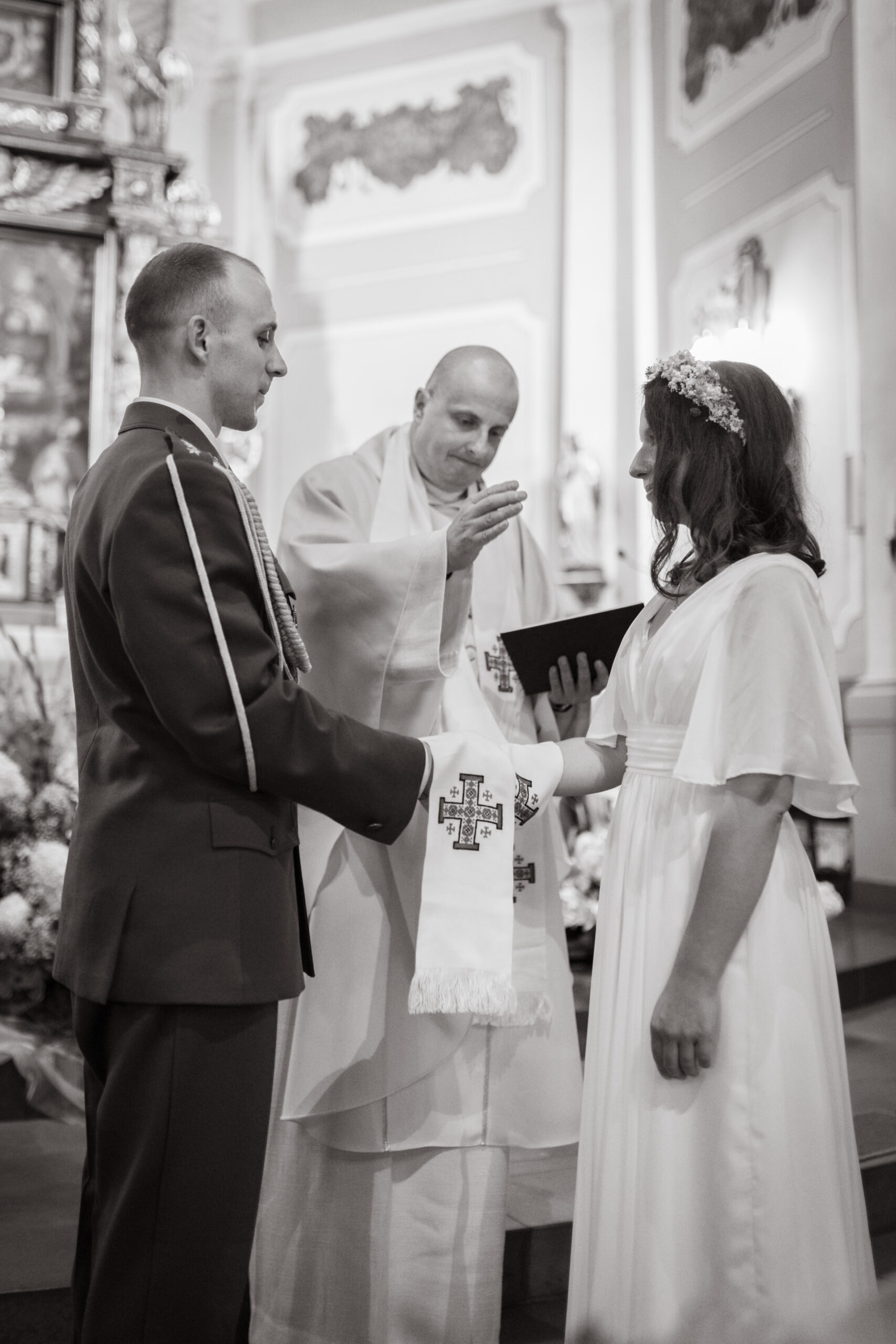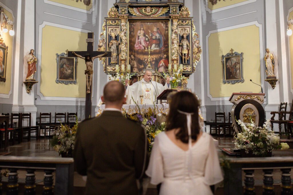 To był niecodzienny ślub… Święto Wojska Polskiego, piękny, sierpniowy, letni dzień. Pannę Młodą zastaliśmy w pięknym, rodzinnym ogrodzie na 3h przed ślubem plecącą swój wianek z kwiatów polnych. Pamiętam, że byliśmy wtedy bardzo zaskoczeni. Michalina ze spokojem w głosie opowiedziała nam, że po tym, jak już skończy swój wianek, będzie się malowała, siostra pomoże jej podkręcić włosy, a jeśli zdążą, to pomalują jeszcze paznokcie. Wchodząc do domu zostaliśmy ciepło przywitani przez Panią Mamę i rozpoczęliśmy obserwowanie rzeczywistości rodziny, do której w tym dniu nas zaproszono.