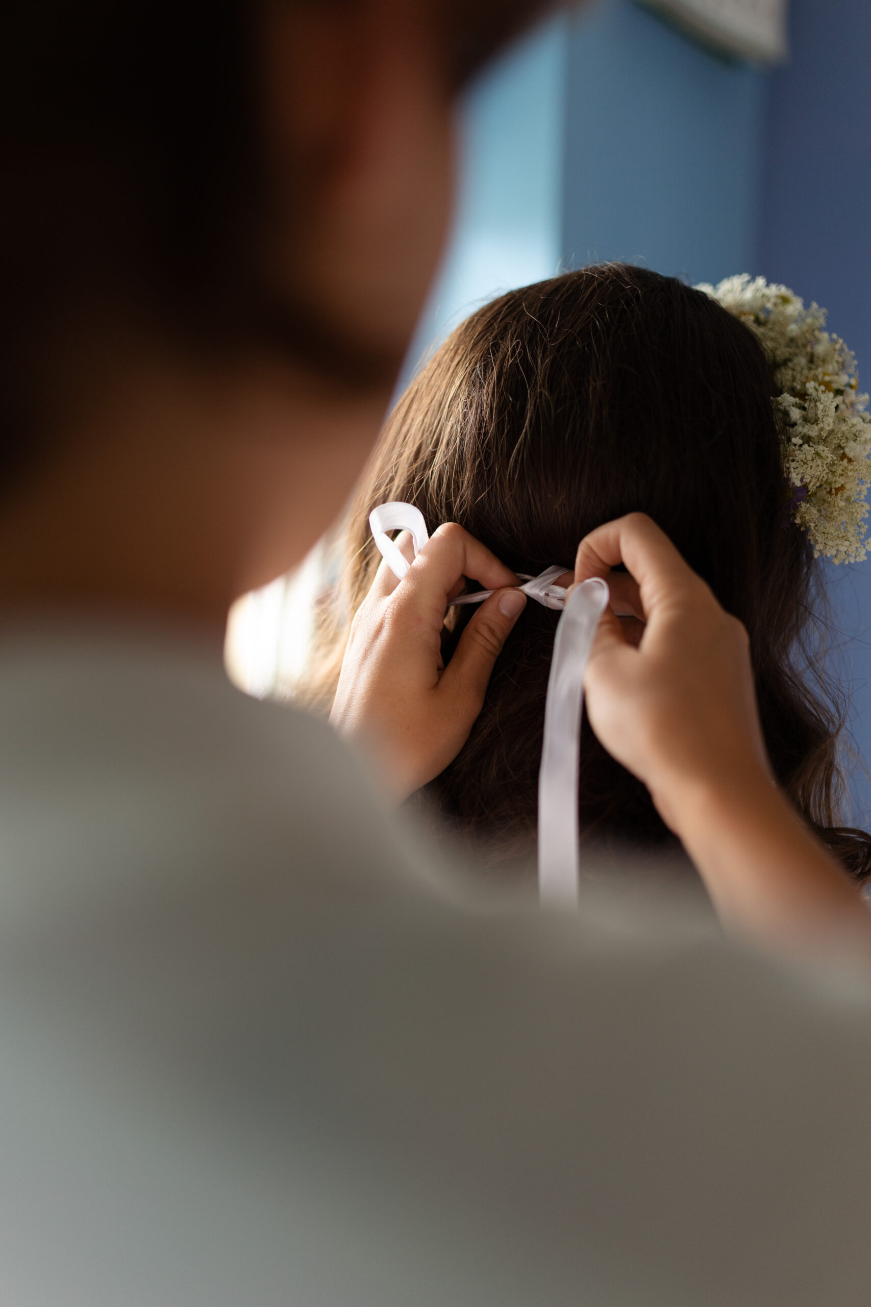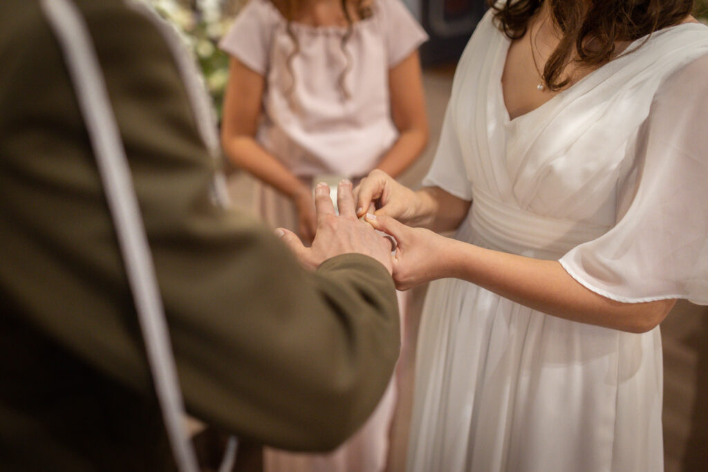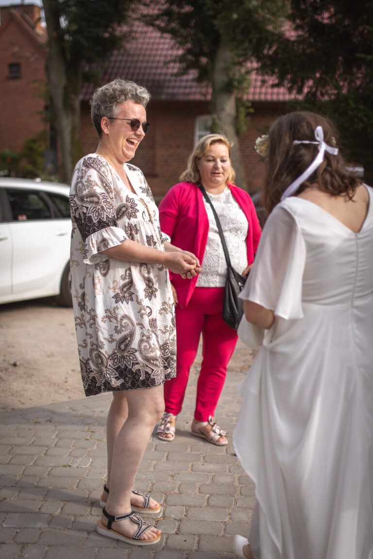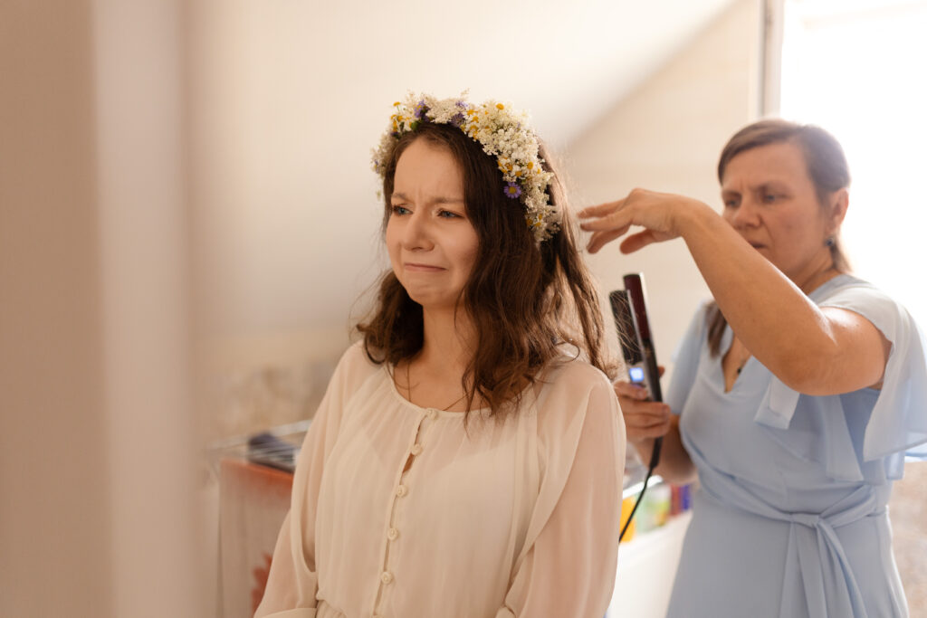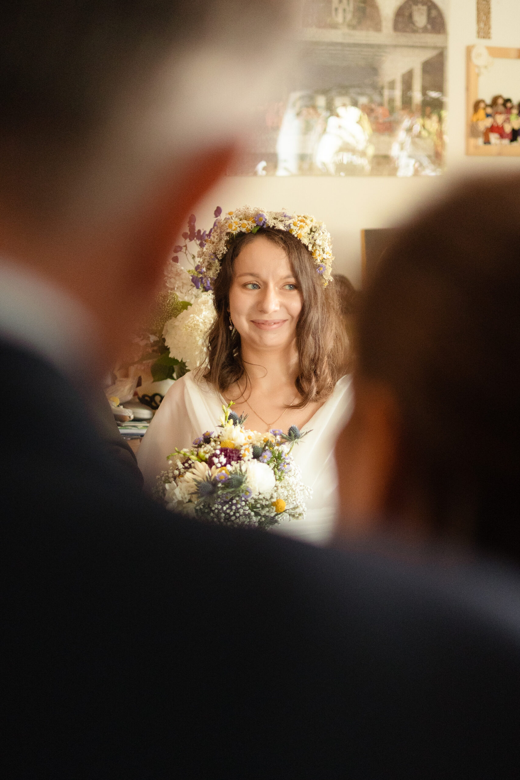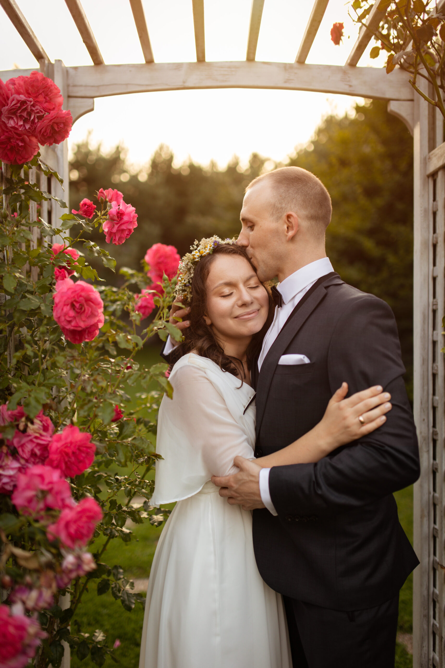 To był niecodzienny ślub… Święto Wojska Polskiego, piękny, sierpniowy, letni dzień. Pannę Młodą zastaliśmy w pięknym, rodzinnym ogrodzie na 3h przed ślubem plecącą swój wianek z kwiatów polnych. Pamiętam, że byliśmy wtedy bardzo zaskoczeni. Michalina ze spokojem w głosie opowiedziała nam, że po tym, jak już skończy swój wianek, będzie się malowała, siostra pomoże jej podkręcić włosy, a jeśli zdążą, to pomalują jeszcze paznokcie. Wchodząc do domu zostaliśmy ciepło przywitani przez Panią Mamę i rozpoczęliśmy obserwowanie rzeczywistości rodziny, do której w tym dniu nas zaproszono.